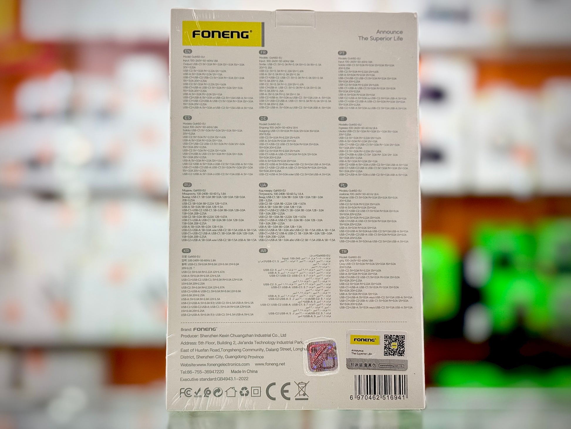 FONENG GaN50-EU 65w 3-Port Fast Charging Adapter With Type-C to Type-C Cable- EDH260148