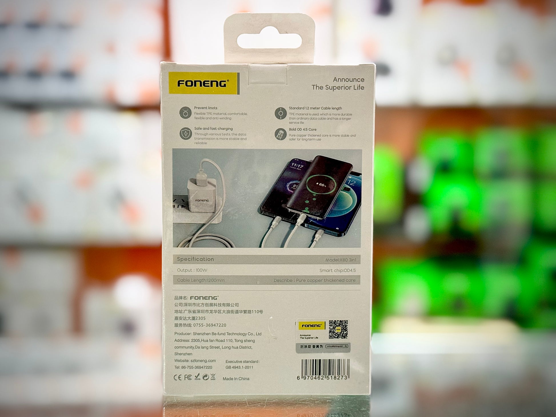 FONENG (X92) 60W Braided Fast Charging 4-in-1 Cable- Black- EDH260120